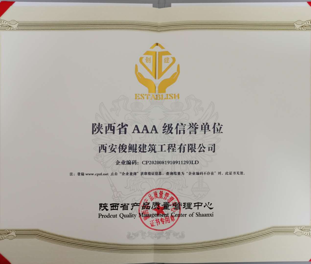 陜西省AAA級信譽(yù)單位(西安俊鯤建筑工程有限公司)