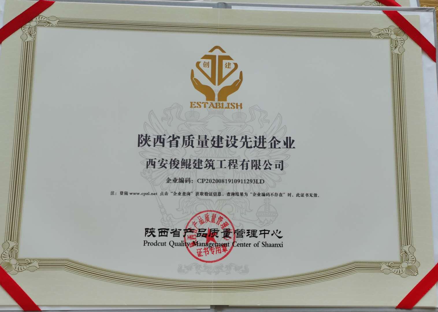 陜西省質(zhì)量建設先進企業(yè)(俊鯤)
